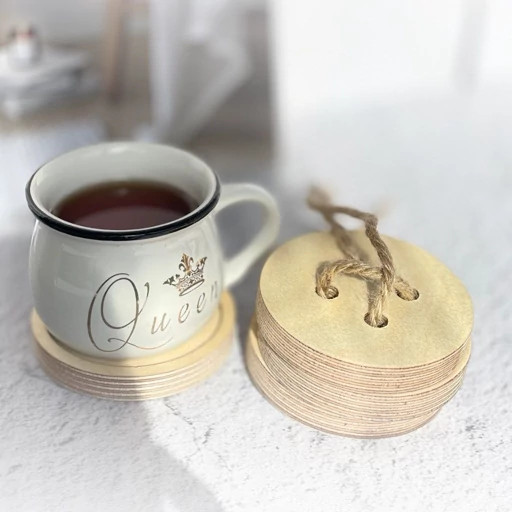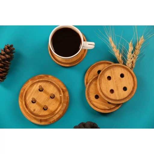 زیر لیوانی چوبی طرح دکمه